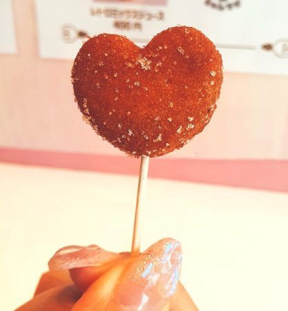 ハートの淵からはみ出た衣は丁寧にハサミで切り取り、完璧な状態の一品。 フライドカステラも専用に毎回焼き上げられて、食感が変わって美味!