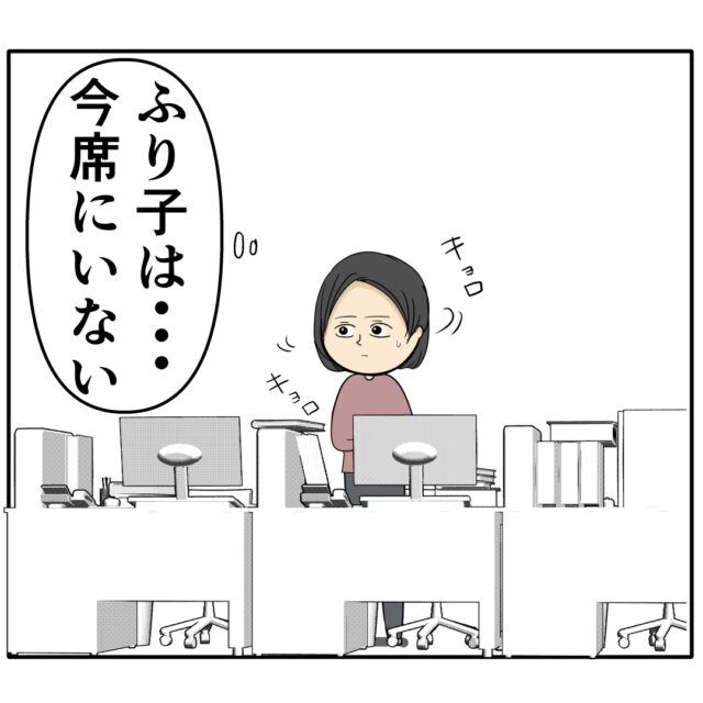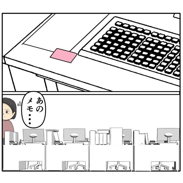 ふり子さんのことを何だか怪しいと思っていたマキさん、「誰にでもあんな感じなんだよな」と自分の考えを反省していたのですが、良し男さんのデスクの前にいるふり子さんを見て、立ち去った後近づいてみると、書類の下にメモが・・