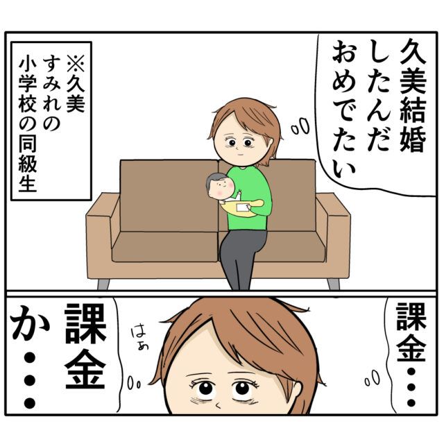 と、小学校時代の同級生久美さんからの結婚のお知らせを見て呟くすみれさん、