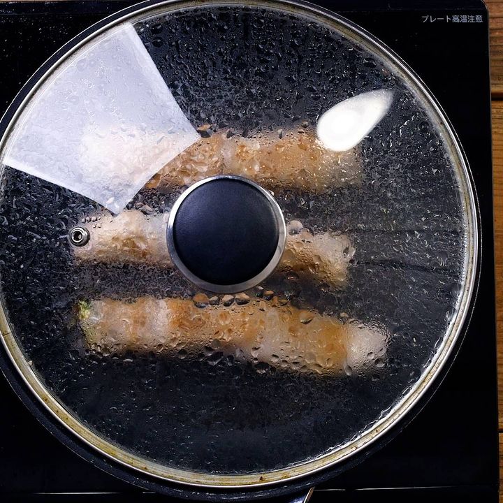 4: 2〜3分転がしながら焼き、焼き色がついたらフタをして2分蒸し焼きにします。