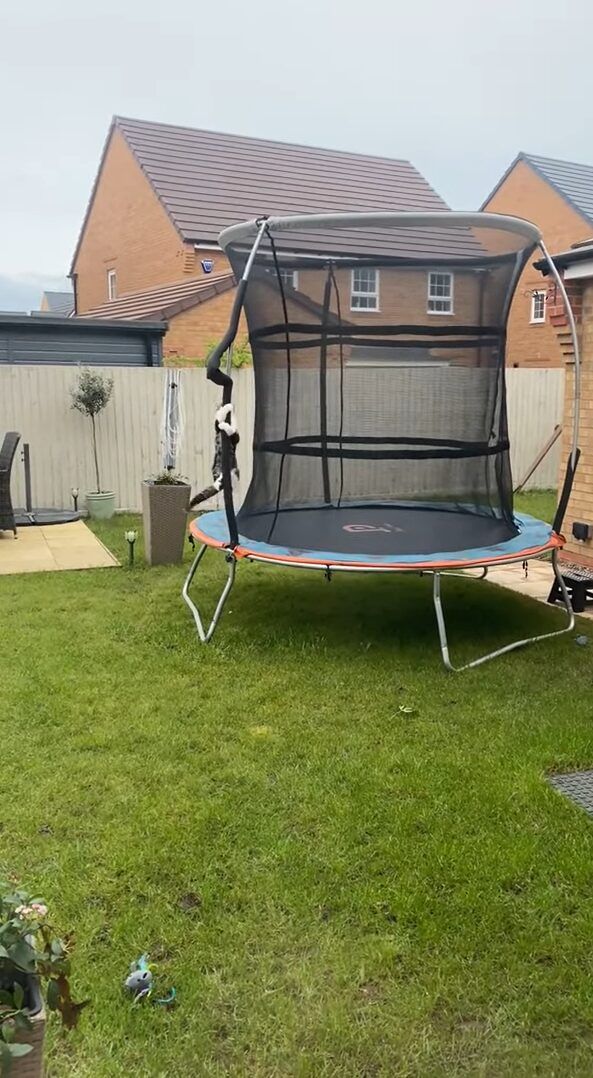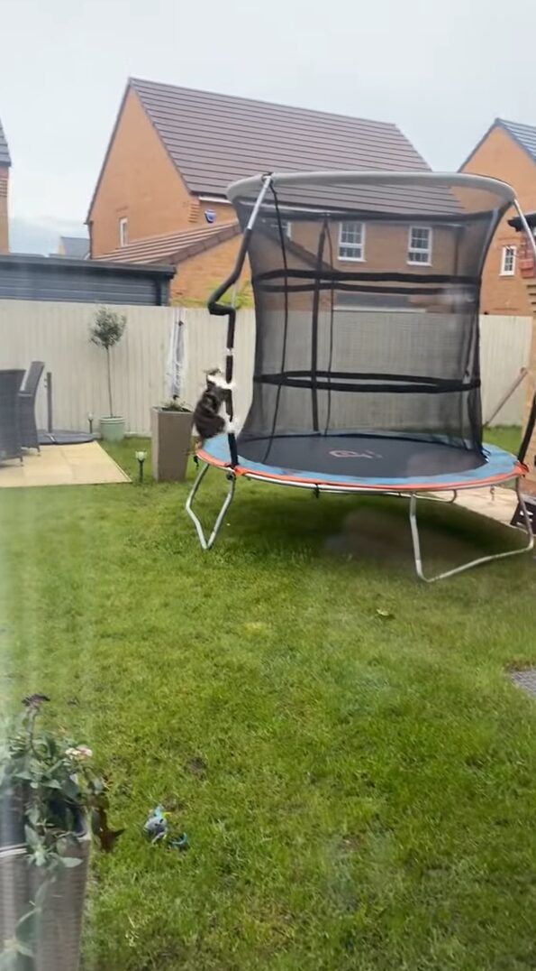 庭に置かれたトランポリンに向かって、まっすぐ走っていくネコ! それは、トランポリンで遊ぶためにむかっていっているようでしたが・・・、この子は意外な遊び方を始めたのです!!