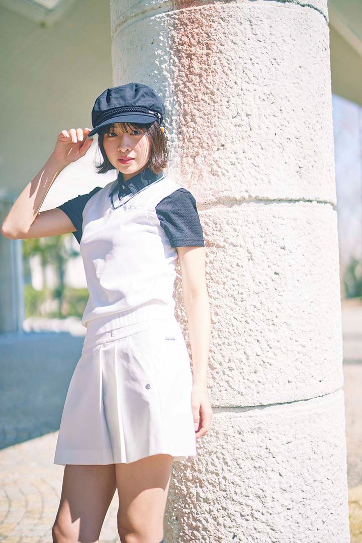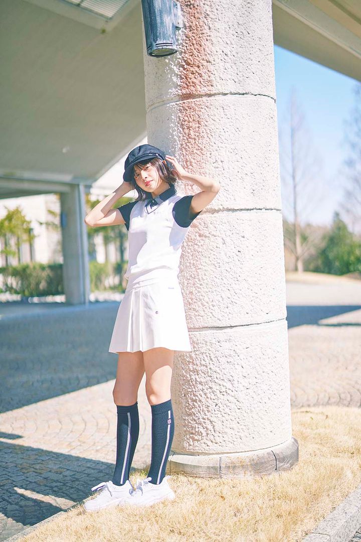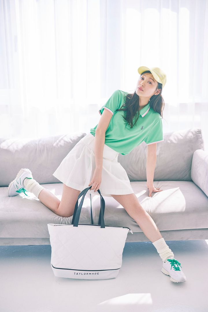 [スカートを着回し]シャツ¥20,900/ポロ ラルフ ローレン キャップ¥5,280/キャロウェイ シューズ¥15,400/ニューバランス ゴルフ バッグ¥15,400/テーラーメイド