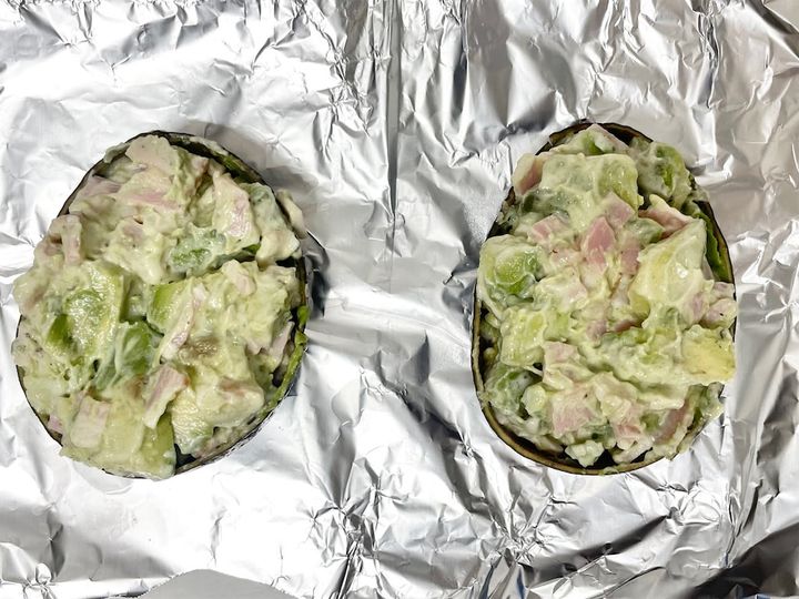 アボカドの皮を器代わりに使うとビジュアルがいいだけでなく、後片付けもラクでとても良かったです。