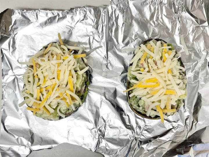 4. トースターの天板にアルミホイルをのせ、アボカドをおきます。