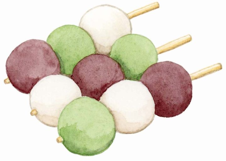ずらりと並ぶ姿も美しい、指先ほどの三色団子。