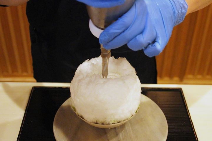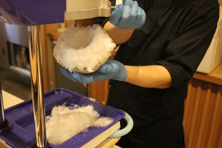 「抹茶みるくかき氷」の製法を特別に見せていただきました。