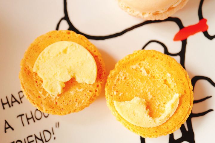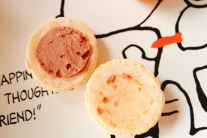 中にチョコレートのクリームが入っているのですが、マカロンがとても甘いので、中のチョコクリームの味わいが正直、良く分からない…!笑 でも食べた後にアーモンドの風味が感じられました!スイーツというよりおやつに近い感覚で食べられますよ。スヌーピーはかじるのをためらうほどの可愛さです!