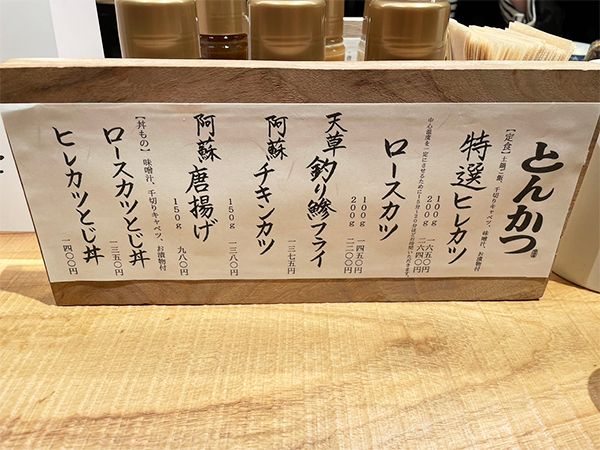 お品書きはこちら。どれも絶対美味しいやつ… でもやっぱり、はじめは「特選ヒレカツ定食(100g・税込1650円)」を注文です!