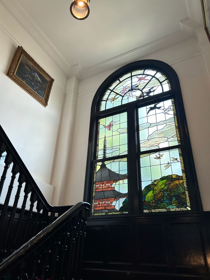 バラで有名なこの鳩山会館ですが、もう一つ見どころなのがステンドグラス!