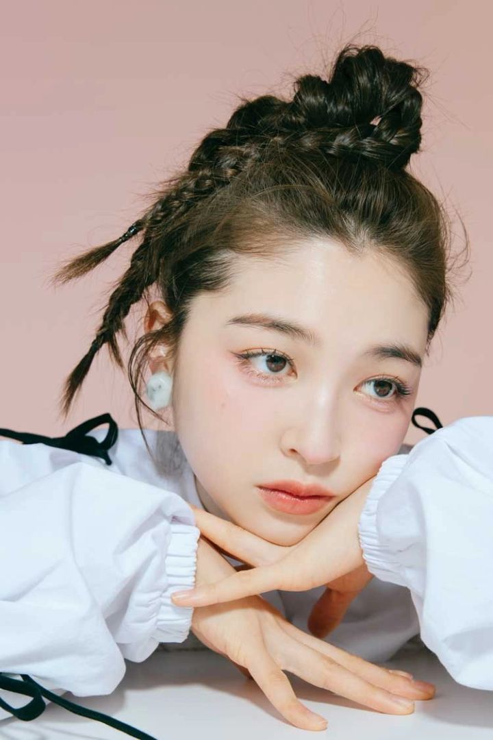 全体的に赤~ピンクの血色感でまとめたワントーンフェイスに、下まぶたのアイメイクとチークをつなげたような“新生タレ目メイク”が印象的。うさぎみたいな充血ちっくでうるんだ瞳をこれでもかってほどに表現!