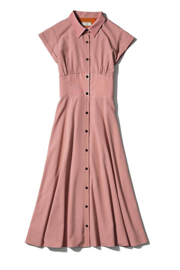 シャツのきちんと感を味方につければ、オフィスでピンクワンピを着ても安心♪