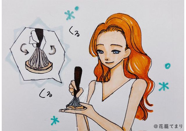ブラシにお粉を含ませ、お粉の蓋の裏や、手の甲にブラシをクルクルと回し、余分なお粉を一旦落としてからお肌にクルクルとつけると、お粉のつけすぎを防止できます。