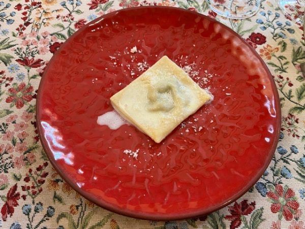 次に出てきたのがラヴィオリ。 チーズとほうれん草が中に詰まったラヴィオリはツルっとした食感もたまりません。
