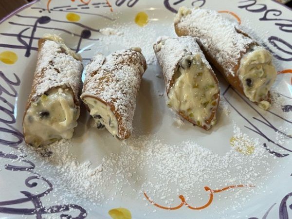 シチリアのデザート カンノーロ。 私は今まで食べたことがなく、はじめましてのデザートだったのですが凄く美味しい!!! さくっとした筒状の生地の中にはクリームがたっぷり。 お腹いっぱいなはずなのにペロリと食べてしまいました。