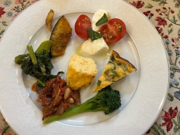 コース料理の最初はパン・スープ・前菜の盛り合わせ 目にも色鮮やかな料理の数々はどれも絶品!