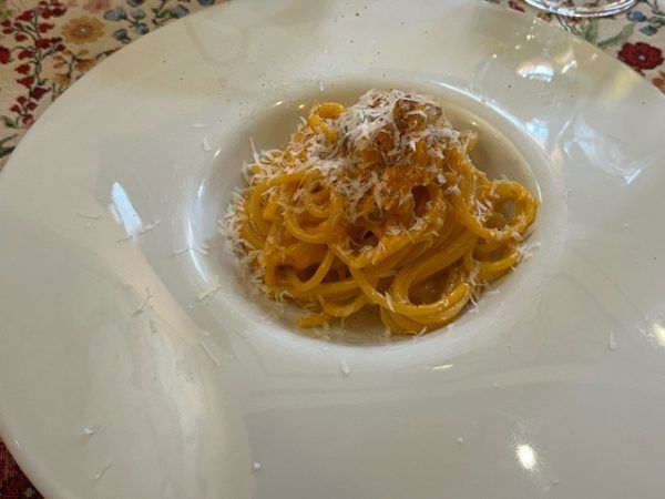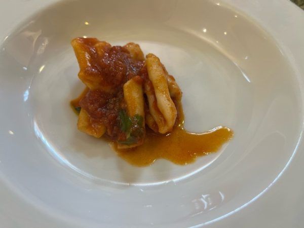 最後に出てきたのがカヴァテッリ カヴァテッリは初めて食べたパスタだったのですが、食感がすごい! 中がぎゅっと詰まったパスタでピリっとしたソースとの相性が抜群! しっかりモチモチした食感と一緒に味わいました。