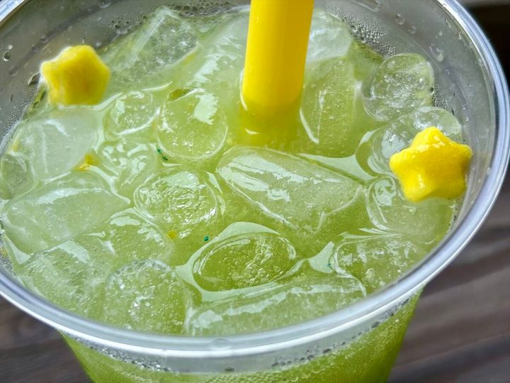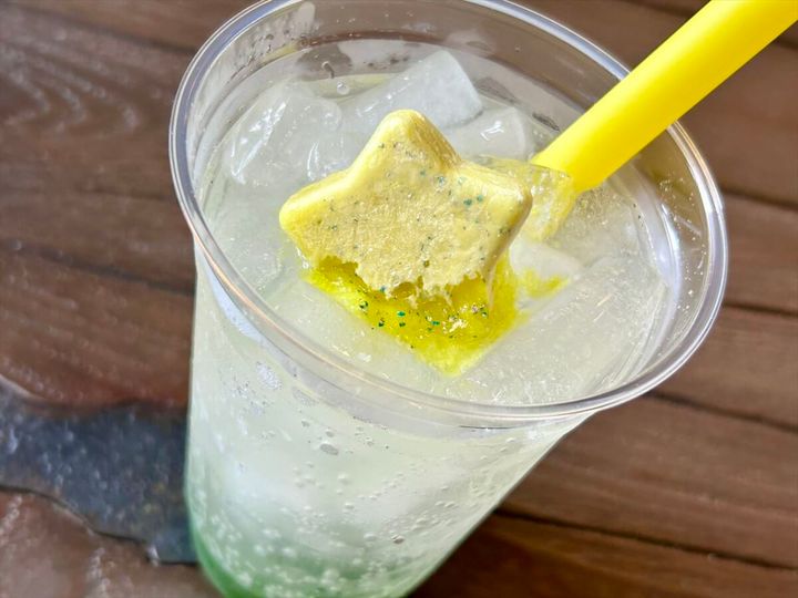 トップに浮かべた星をドリンクのなかで溶かすと、なかから小さな星があらわれました! キウイとレモンの風味がはじける、爽やかな一杯です。