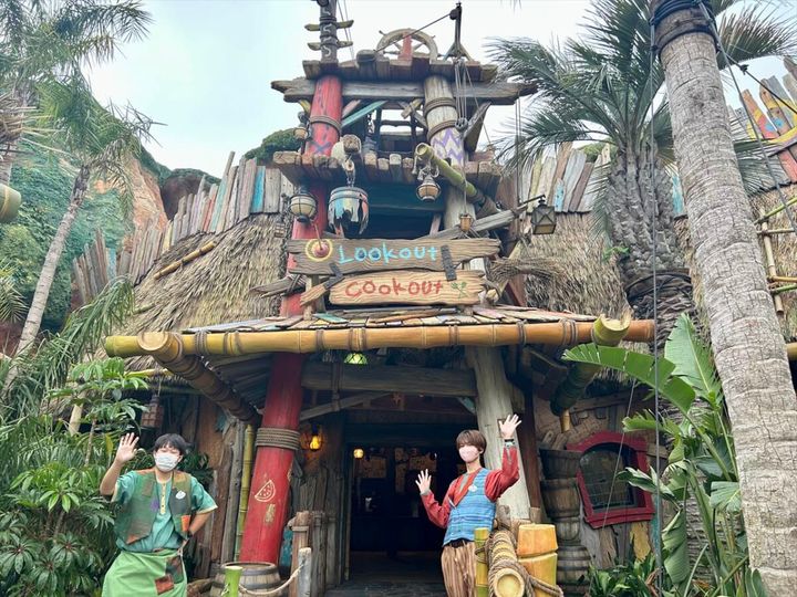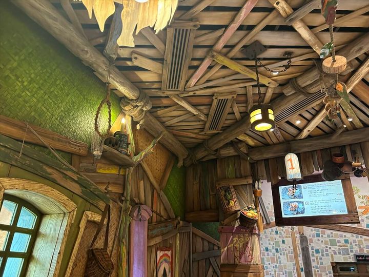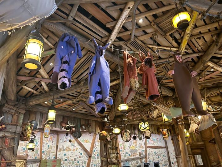 このレストランは、難破してネバーランドに漂着した船の残骸や漂流物などが建物の材料として使われています。ロストキッズの遊んだ形跡や衣装などがそこかしこに。遊び心たっぷりの内装で、どこで撮っても映えそうです。