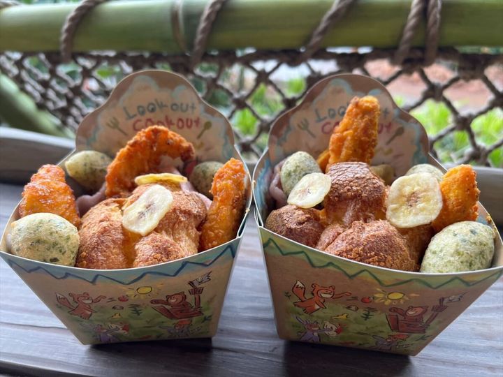 一番の注目メニューは、「ロストキッズスナックボックス」です。チキンテンダー、ポップオーバー、海藻フリッター、バナナチップス、シュリンプチップスなどが入っており、いろいろな味を楽しめます。