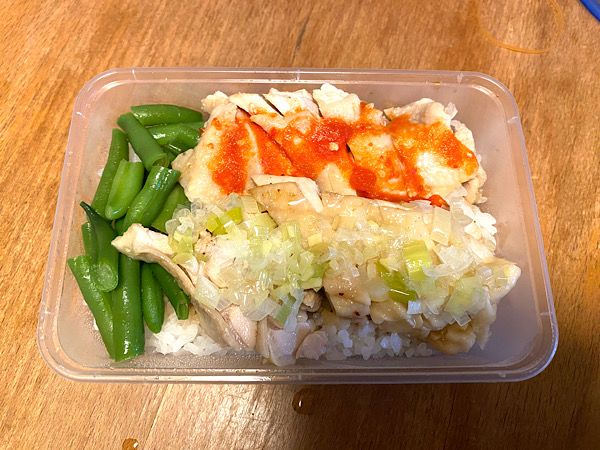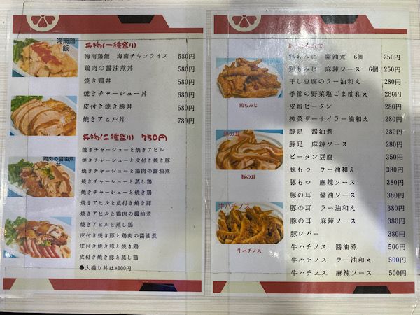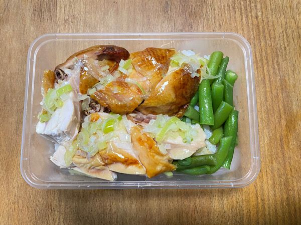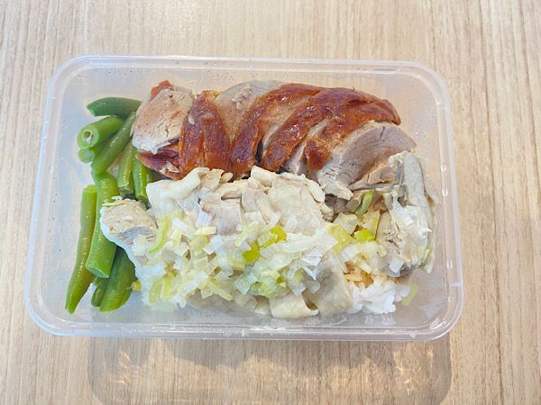2種盛り丼 焼きアヒルと蒸し鶏 750円 上が焼きアヒルです。こちらは買ってから時間が経ってから食べたので皮めのパリッはなかったのですが、もしかしたら出来立てはパリッなのかも。しっとりとした皮もすごく食べやすいです。ほんのり癖のあるあひると甘めの味付けが合います。骨が付いている箇所があります。骨もバリバリ行けそうなくらい柔らかいです。 下は蒸し鶏。蒸し鶏って飲み物?というくらいしっとりしてます。ネギ塩ダレの油が蒸し鶏と良いバランスです。