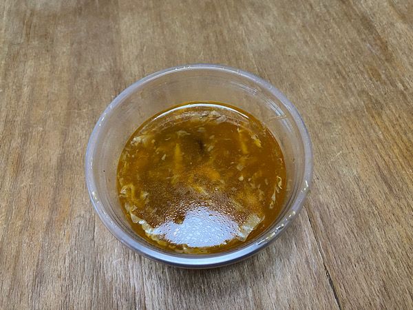 実はサンラータンを飲みたくてこちらのお店に行ったのが始まりです。 サンラータン 150円。 こちらのとろみはあっさりしています。味は辛めですが後を引かないお上品な辛味です。深い味付けなので飲むだけではもったいないと思い、うどんを茹でてつけうどんにしました。すごく合いました!