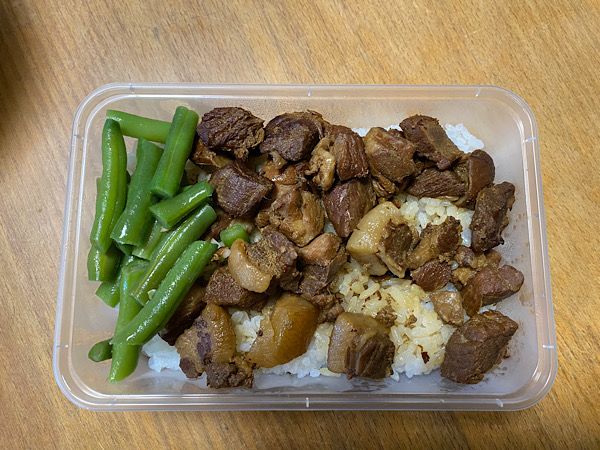 魯肉飯 並 550円 八角がほんのりと効いていてます。甘味でごまかさず、肉の味がよく出ている魯肉飯です。添え物のインゲンが箸休めにピッタリ!