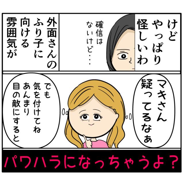 「けど・・確信はないけど・・やっぱり怪しいわ。外面さんのふり子に向ける雰囲気が・・」