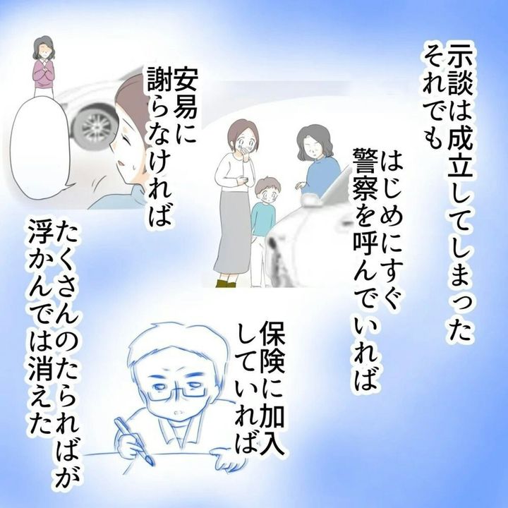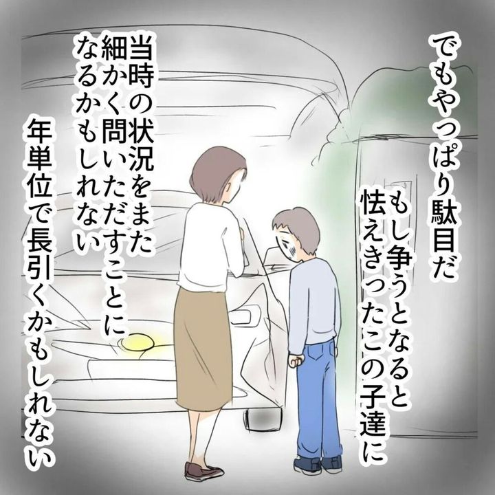 このお話は、ますまゆ ⭐︎育児・エピソード漫画(@masumayu3)さんの友人の体験に基づくものです。隣野さんの悪意を感じた主人公は、示談後も悔しさをつのらせていました。しかし示談の際にした約束もあり、気持ちに折り合いを付けて過ごしていたのですが、数か月経ったある日、気になるうわさを耳にするのでした。『お宅のお子さんが車を傷つけました』第8話をごらんください。