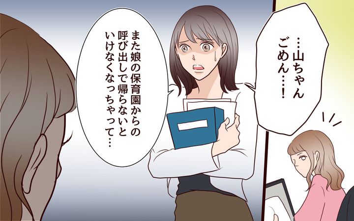 ・これは会社の体制が悪い。小さいお子さんがいる女子社員はこういう状況になる事が多いんだから、1人の社員にそのしわ寄せがいくのはダメだ。