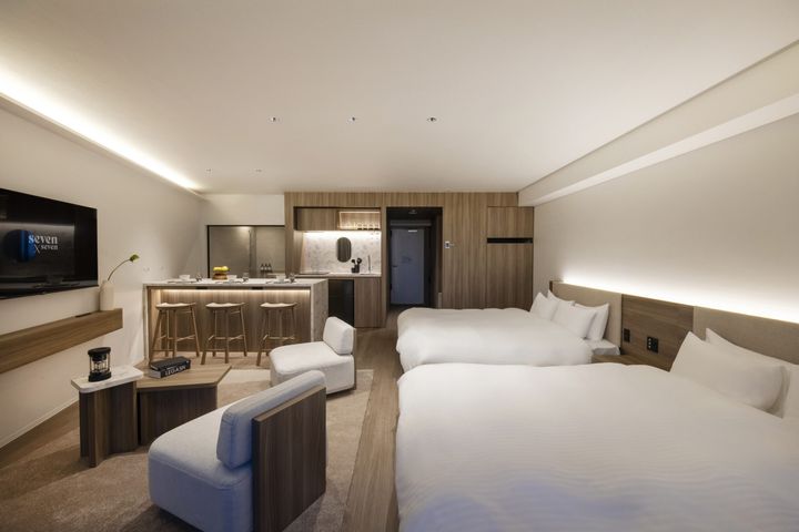 福岡県福岡市の西端に位置する、シーサイドリゾート地・糸島半島・二見ヶ浦地区に開業した「seven x seven 糸島」。エリア初となるこちらのホテルは、グループ向けホテル「FAV HOTEL」のスタイルを継承しながら、ハイエンドラインとして誕生しました。「ラグジュアリーを遊べ」というタグラインのもと、従来のラグジュアリーを再定義。その土地のロケーションに合わせたホテルデザインや、アメニティや食など、贅沢と自由を調和させたホテルステイを提供しながら、QRコードによるスマートチェックインやデジタルコンシェルジュを導入することでセルフホスピタリティを推奨し、ゲストそれぞれの楽しみ方を尊重しています。