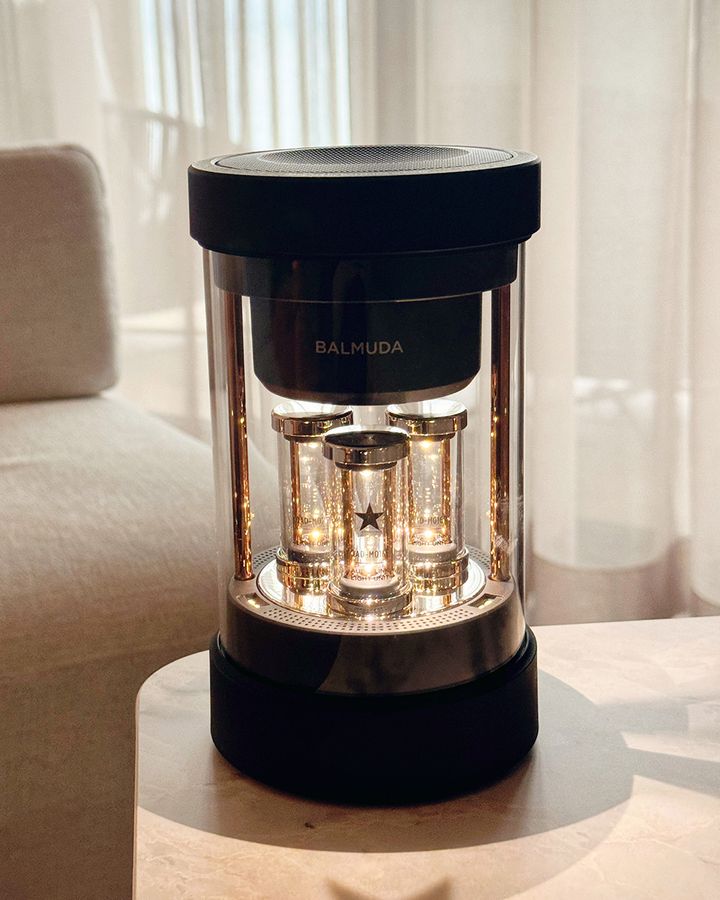 Bluetoothスピーカーにはバルミューダを採用。音に合わせて揺れる光に癒されながら、チルなBGMでお部屋空間をもっと素敵に。