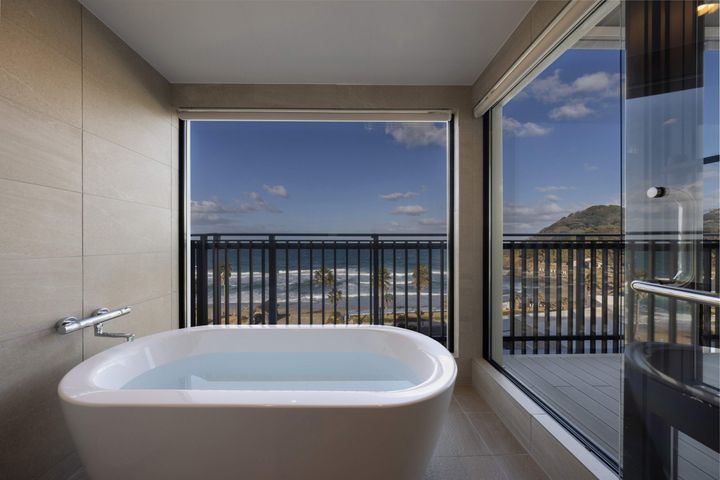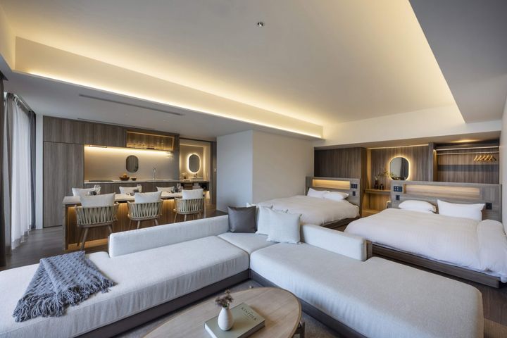 WEST棟とEAST棟に分かれる客室は、全室オーシャンビュー&テラスつき。窓一面にまるで南国のような海&ビーチが広がり、朝焼けからサンセットまで、ゆっくりと時の流れを満喫できます。定員4名、6名、8名とグループステイを想定して作られており、バンクベッドつきの部屋からBBQができる部屋、和室つき、ペットフレンドリー、ルーフトップジャグジーなど、メンバーや目的によって選べる多種多様なラインナップ。大人数で贅沢に女子会をしたり、両親や祖父母を連れてファミリー旅行をしたり…楽しみ方はさまざま!