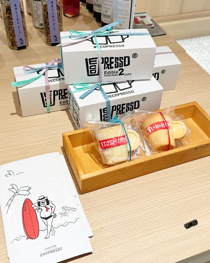 「ITOSHIMA」「すいと〜と♡」のアイシングが可愛らしい、食べられるエスプレッソカップ。思わずクスッと笑ってしまうユーモアと、SNS映えするデザイン性で、女友達へのギフトに。