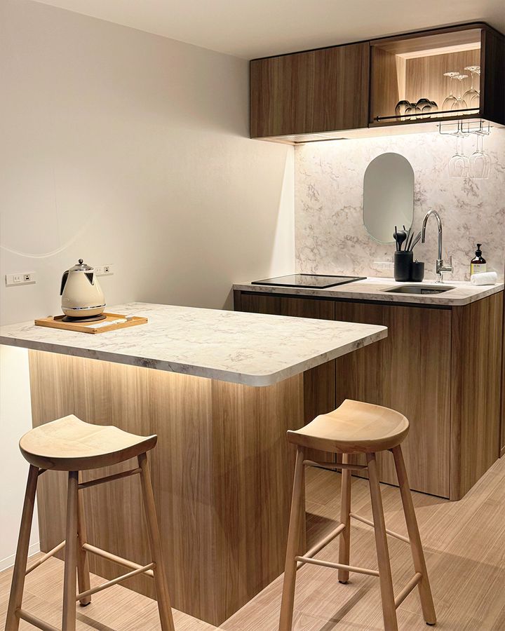 なんと全室キッチンつき!近隣の道の駅で地元の食材を購入して、みんなで調理しながらお部屋でディナーという過ごし方も。