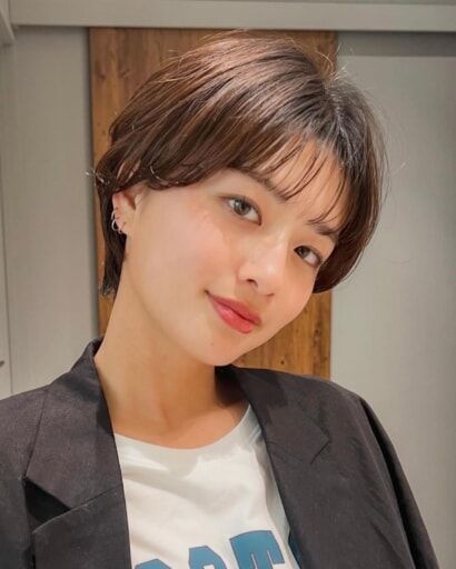 飾り気もないけど手抜き感なし。そんなおしゃれ感の引き上げには“長めショートボブ”がおすすめです。軽やかながら一気にアカ抜けた雰囲気を醸せます。