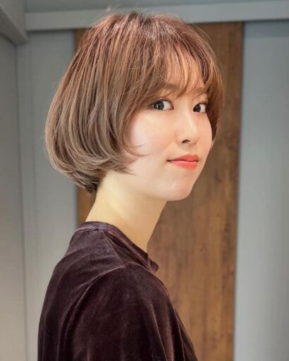 ショートボブは顔立ちによっては少し幼見えすることもあるため、肌をよりキレイに見せる透明感のあるダークトーンの髪色と合わせるのがポイント。肌と髪色の対比効果で大人感が高まると共に清楚感も引き上がります。また、襟足に向かってシルエットをタイトにまとめて美シルエットに仕上げましょう。