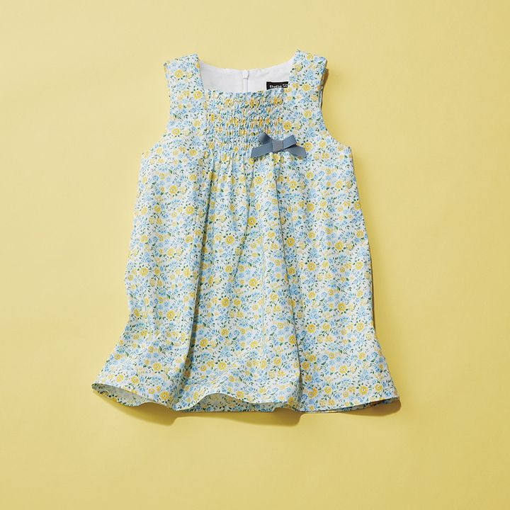 時代や流行をとらえながらも、人とかぶらない遊び心を入れるデザインが魅力的なBeBe。女の子人気の高い花柄ワンピも、胸元のシャーリングでグッとシャレた印象に。腕まわりがゆったりしたノースリーブだから、長袖のインナーを重ねてのスタイリングや姉妹での着回しも自由自在。花柄ワンピース[80、90cm]¥11,000(ベベ/ベベ カスタマーセンター)