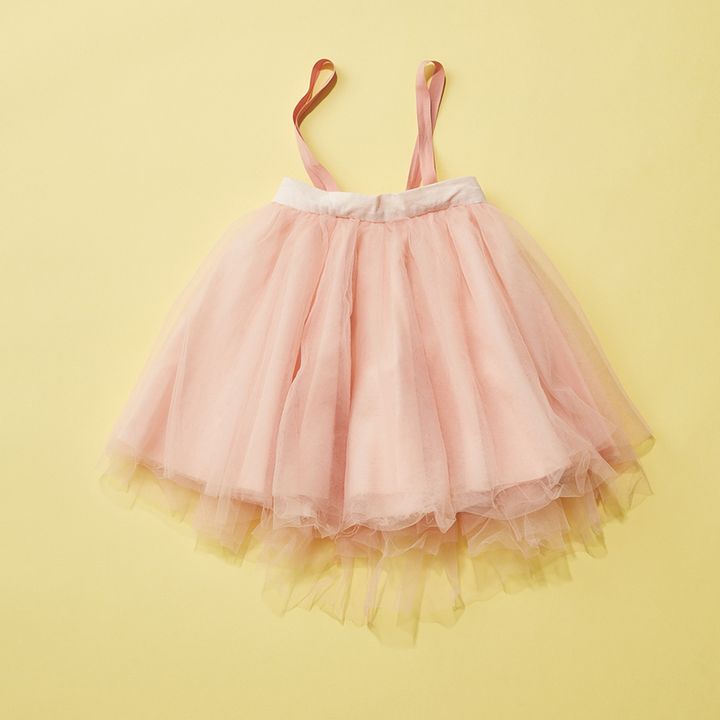 感度の高いママからの支持が厚く、ギフト需要も高いマールマール。スタイが有名ですが、0 〜6 歳まで使えるよう作られたチュチュも隠れた名品。幾重にも重なるピンクのチュールは特別感たっぷり。チュールスカートは1 点投入するだけでコーデが華やぐ。モノトーン好きママにはスモーキーカラーもおすすめ。チュチュ[0Y~6Y]¥7,480(マールマール)