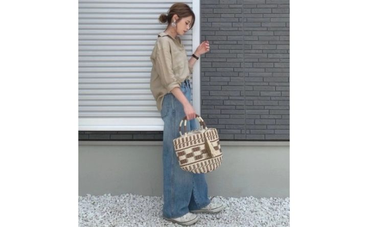 『CONVERSE(コンバース)』のスニーカーに、上下『UNIQLO(ユニクロ)』でそろえた@ yun_wearさんのカジュアルコーデです。デニムでもゆったりとしたワイドパンツなら、動きやすさもしっかりクリア! ユニクロ「ハイライズワイドストレートジーンズ」は、形がきれいすぎるとSNSでも人気のボトム。爽やかなブルーが、トップスの淡い色の「プレミアムリネンスキッパーシャツ」との相性もばっちりです。