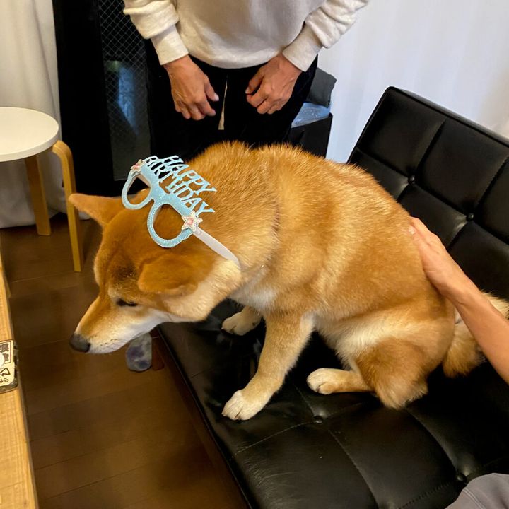 こんにちは、ハルくんです。ずいぶんとご陽気な様子のぼくですが、これはぼくの生誕祭ではありません。かーちゃんとーちゃんのお友だちのお誕生会でのひとコマです。いくつになってもお誕生会は楽しいみたいで、みんなニコニコ、たくさんしゃべって、たくさん飲み食いして、ハッピーな夜でした。ぼくも盛り上げ役として被り物なんかも積極的にやって、がんばりました。また誰かの誕生会をやりたいな。
