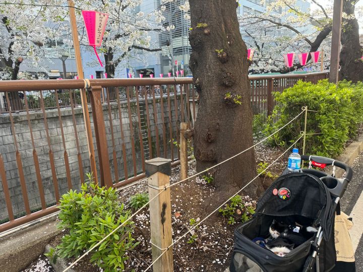 今年も香ちゃん(ママ)とコーキくん(パパ)にお花見に連れてってもらったよ。今年はちろりも一緒だよ