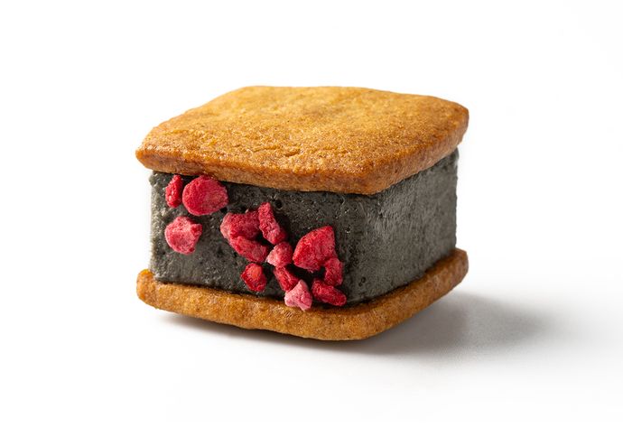 黒ごまのほのかな苦みとコク、フランボワーズの甘酸っぱい風味とバタークリームのマリアージュが楽しめます。