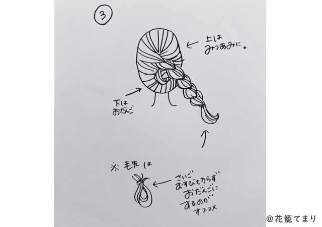(3)上半分は三つ編みをします。