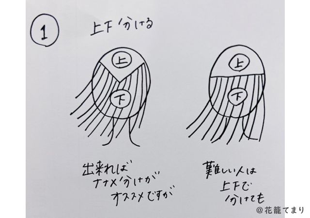 (1)まずは上下で髪を分けます。
