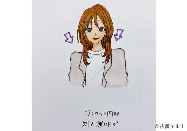 対人運をよりアップしたい場合には、毛先だけくるっとワンカール巻くのも良いでしょう。