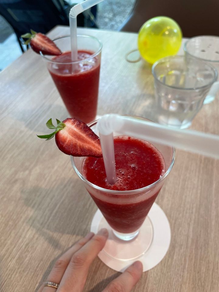 我々はいちごジュースをいただきました!いちごをふんだんに使ったジュースで、とってもおいしかったです。建物は比較的新しく、授乳室もあるので赤ちゃん連れにもうれしいです。