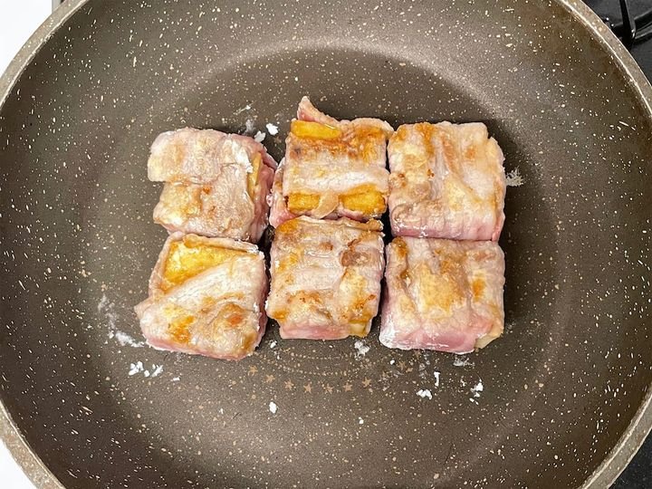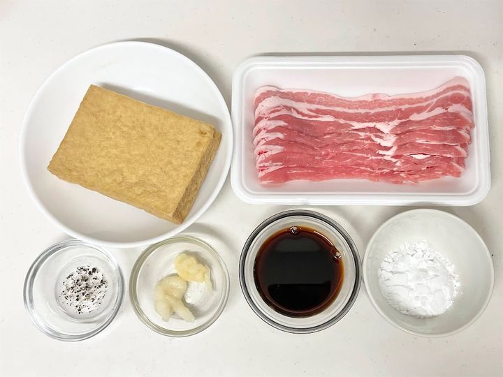※今回は厚揚げ1枚を6等分、豚バラ薄切り肉6枚分で作っています。