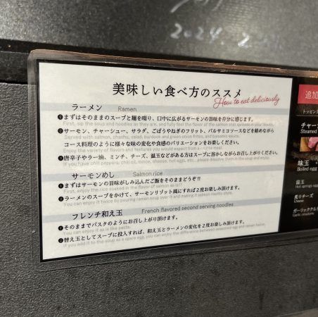 机には、このラーメンの美味しい食べ方が細かく書かれていますので、ぜひ参考にしてみてくださいね!