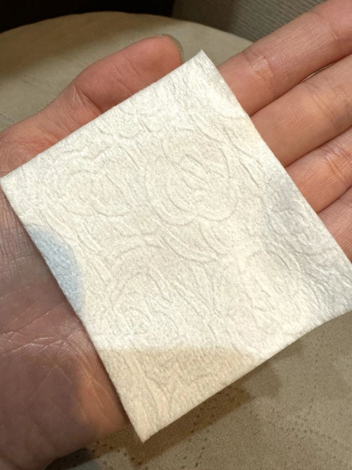 コットンでのふき取りにめんどくささを感じていた私ですが、「トワニー スキンリピュア専用コットン」は手のひらがすっぽり隠れるほど大判!お風呂あがりに走り回る子どもを追いかけながらでも、片手でささっと全顔ふき取れちゃうのがママにはうれしいポイントでした!