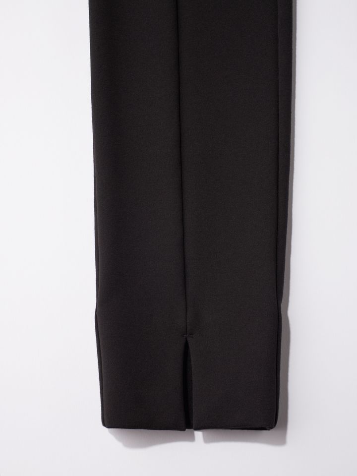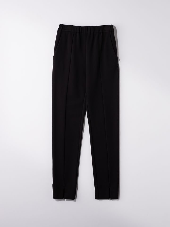 キレイな見た目のストレッチ素材で、厚地でしなやかな裏起毛が特徴のシリーズ。実は風を通しやすい薄手のパンツが多いから、寒い時期に持っておきたいパンツです。裏起毛なのに着ぶくれしないところもうれしい。きれい見えのする生地なのにシワになりにくいウォッシャブル素材でイージーケアなのも魅力。裾に入ったスリット、フロントのセンターラインがIラインをつくりシャープな印象に仕上がります。パンツ¥18,700(yori)